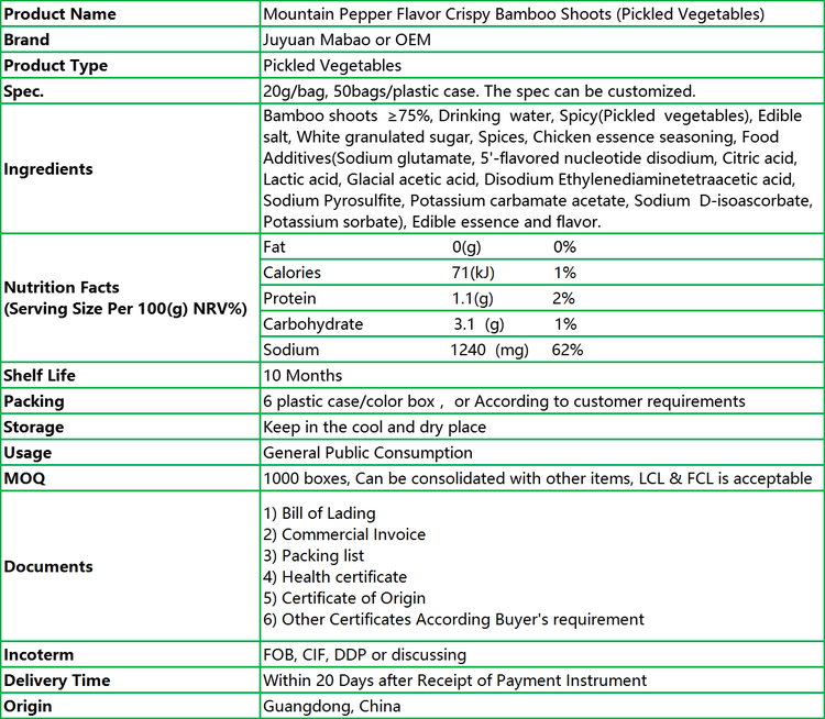 即食山椒脆笋酱腌笋片英德麻竹笋中国国家地理标志产品