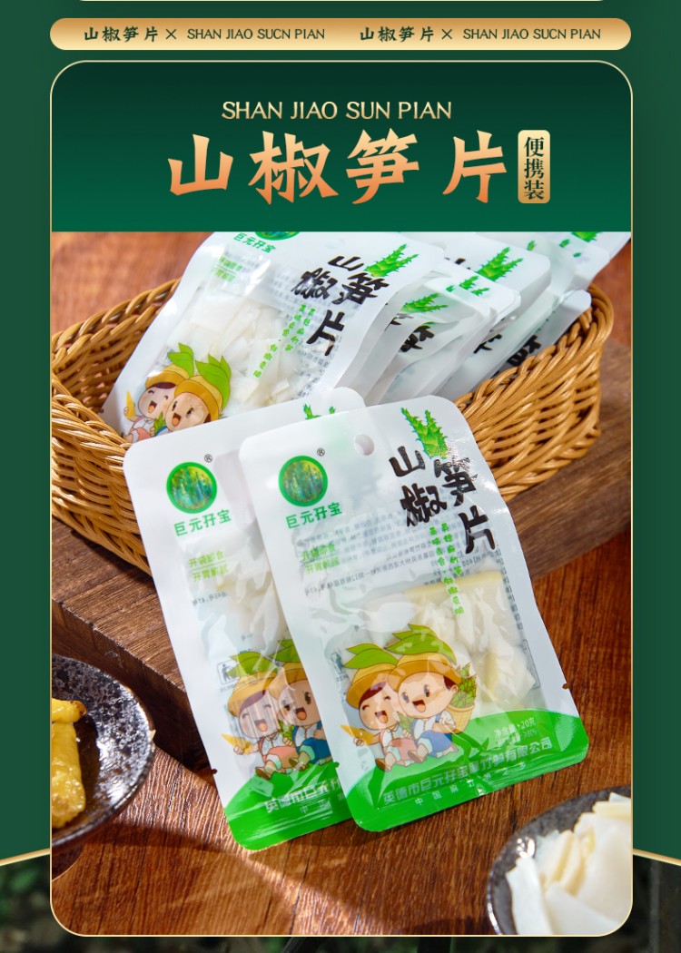 巨元孖宝山椒脆笋开袋即食独立小包装西牛麻竹笋中国国家地理标志产品